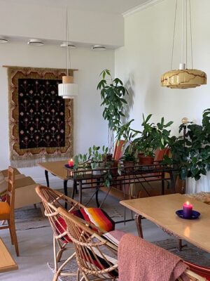 Olemme (lue: mies on) onnistunut löytämään meille aina mukavan, sopivan ja kulloisenkin tarpeen mukaisen majapaikan. Mökkimajoitus on tuntunut hyvältä silloin, kun olemme halunneet viettää enemmän omaa aikaa syrjempänä kylältä ja kokkailla ruokia itse. Kylillä olemme majoittuneet silloin, kun olemme halunneet palvelujen ääreen. Edellisellä käynnillä asuimme Mathildedalin keskustassa Anttipoffin talossa, joka on rakennettu työväen asuintaloksi vuonna 1852. Nyt vuokrasimme uudehkon Villa Tildan lähes Anttipoffin taloa vastapäätä.